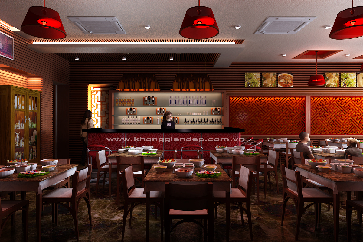 Hình 3 : Thiết kế nhà hàng Việt Nam ở Melbourne, nước Úc. Nội thất sử dụng họa tiết trang trí gỗ truyền thống, cách sắp xếp và bài trí tạo cảm giác không gian thân mật. gần gũi.