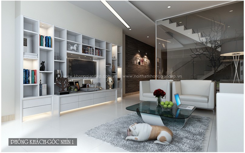 Bên cạnh đó, việc sử dụng những chiếc tủ đựng ti vi, bộ ghế sofa màu trắng nhẹ nhàng, hay màu kem nền nã, màu be nhã nhặn cũng giúp cho căn phòng khách sáng bừng và tươi mới.