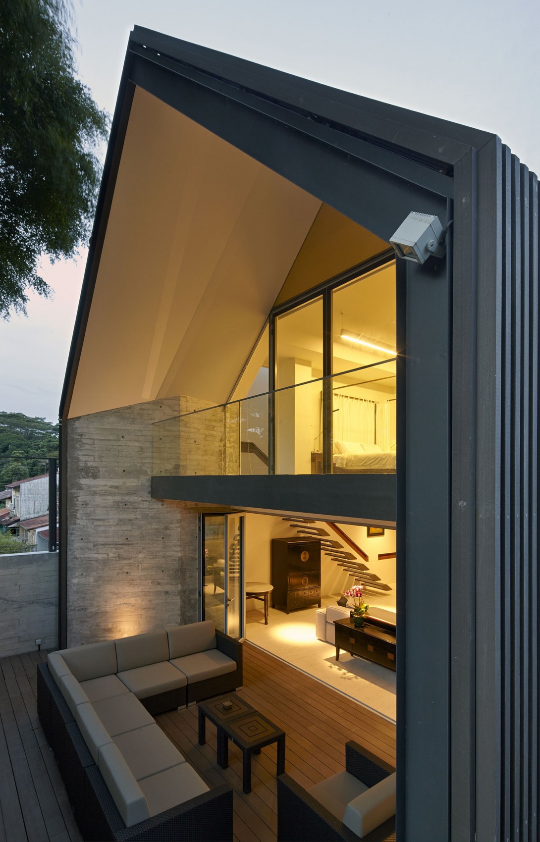 Được giới thiệu lần đầu trên trang Trendir, Y House – một thiết kế của hãng Silver+Ong có văn phòng đặt tại New York là ngôi nhà xây mới của một gia đình ở Singapore. Kết hợp các yếu tố công nghiệp, mái nhà mang hình tam giác và nội thất chỉn chu đã tạo nên một ngôi nhà sáng tươi, thoải mái và thoáng mát. Trái ngược với những bức tường bê tông thô ráp bên ngoài, nội thất bên trong mang lại cảm giác ấm cúng và gây hứng khởi cho người sử dụng. Không gian mở của phòng khách kết nối với ban công bên ngoài tạo thành một kết cấu thống nhất. Sự liên kết của truyền thống thông qua hình dạng của mái nhà và vẻ hiện đại của các vách ngăn kính đã làm nên một thiết kế xuất sắc.