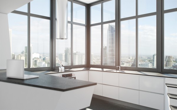 Bằng cách kết hợp các góc cạnh cùng màu sắc tương phản, các căn phòng trong ngôi nhà tương lai này mang phong cách hỗn độn có chủ ý.