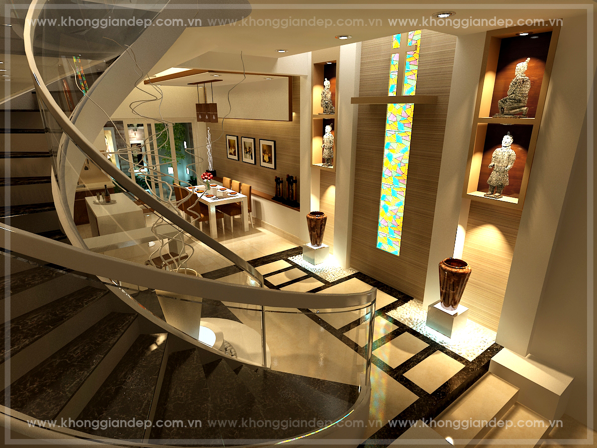 – Tránh đặt cầu thang xoắn ốc vì đây là một điềm gở. Càng nguy hại hơn khi cầu thang đó đặt giữa nhà.