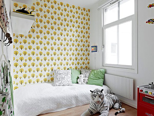 Phòng ngủ thứ hai nhỏ hơn, dành cho những đứa trẻ đáng yêu, phòng ngủ cho khách hoặc phòng làm việc. Các bức tường trong phòng đều được sơn trắng và cửa sổ quan sát được khung cảnh bên ngoài sân chơi.