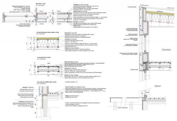 Sàn bằng bê tông được đánh bóng bằng sáp cùng hệ thống sưởi ấm sàn luôn tạo ra sự thoải mái về nhiệt cho người sử dụng. Mặc dù cấu trúc ngôi nhà bằng gỗ, nhưng bê tông được lựa chọn xuyên suốt từ tầng trệt cho đến tầng trên, từ phòng ngủ cho đến phòng tắm. Ngoài ra, nước mưa cũng được thu thập trong một bể ngầm. Tất cả các hệ thống này đòi hỏi sự hiểu biết cũng như kiểm soát hoạt động thường xuyên. Điều này thuộc về kỹ thuật và được mua lại theo kinh nghiệm và yêu cầu của người chủ nhằm thể hiện sự quan tâm đến kỹ thuật, đồng thời cũng là cách thay đổi thói quen kỹ thuật của người sử dụng.