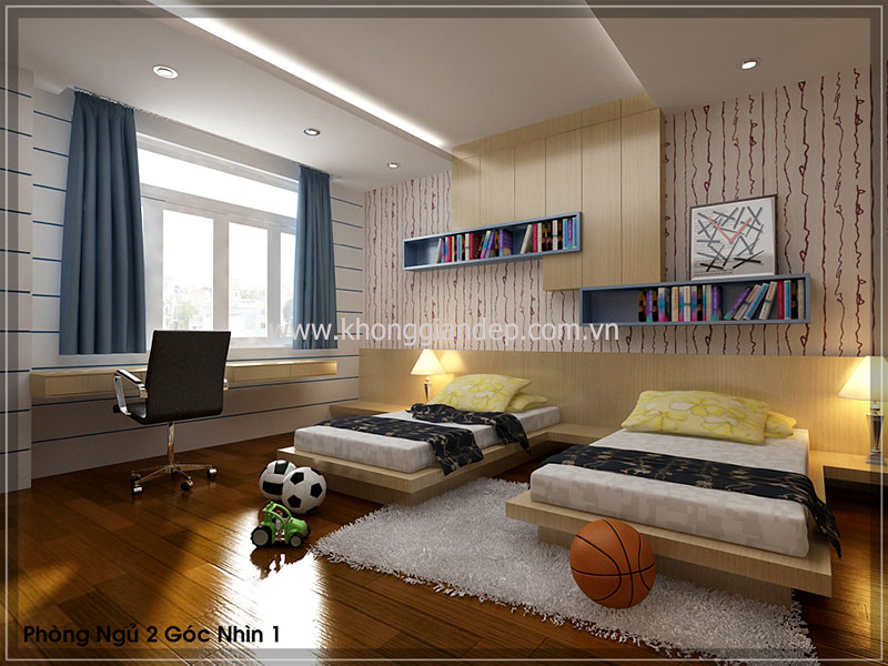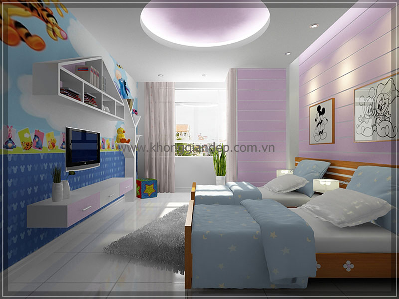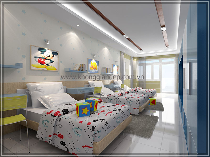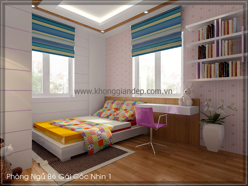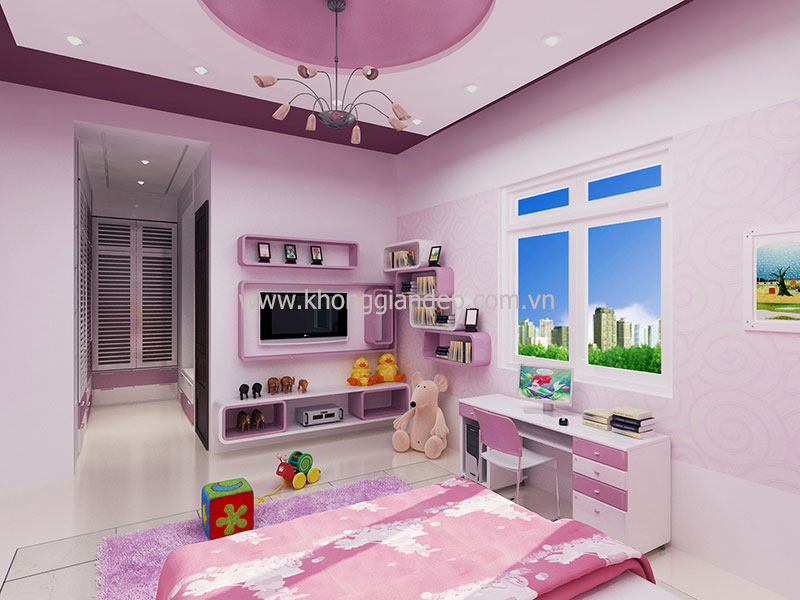 Cách lựa chọn màu sắc, nội thất, những đường nét, hình khối trong căn phòng một cách cẩn thận và tinh tế sẽ tạo nên căn phòng riêng đầy sáng tạo mà vẫn đẹp lung linh dành cho bé yêu. Mời độc giả xem qua một số mẫu phòng ngủ dành cho bé yêu được các kiến trúc sư Không Gian Đẹp thiết kế như dưới đây: