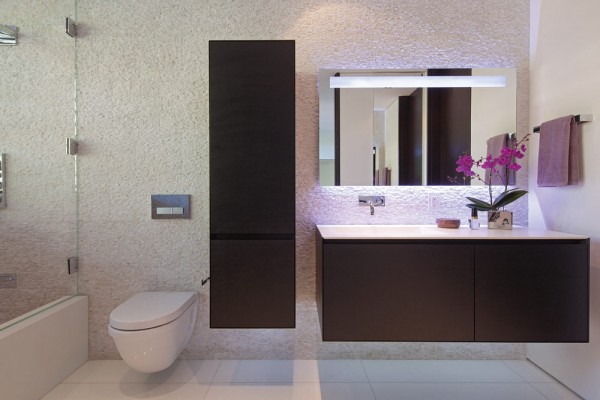 Ngôi nhà có môi trường kiến trúc tương phản cao mà vẫn lãng mạn và đáp ứng xu hướng kiến trúc hiện đại ấn tượng đương thời. Nhà thiết kế Michael Palumbo đã chọn các nguyên liệu nhập khẩu tốt nhất như đá vôi Hera từ bán đảo Sinai, gỗ Wenge, “siêu” gạch Thassos, cửa Renlita với thiết kế theo ý muốn, và cửa sổ Schucco do Đức chế tạo nhằm mang lại màu sắc và “hương vị” của “sô cô la trắng, sô cô la đen” tinh tế theo chủ đề áp dụng.