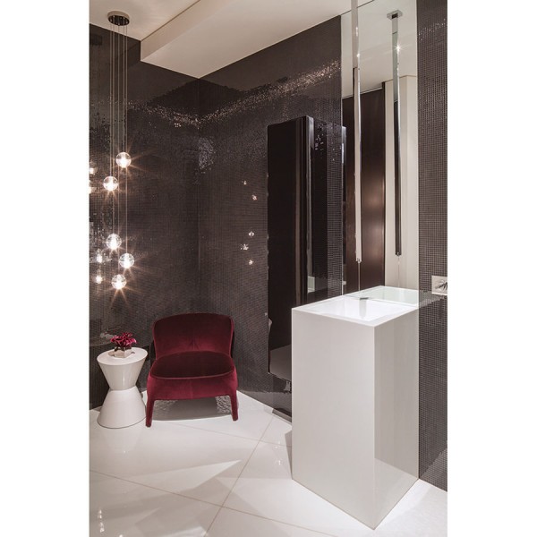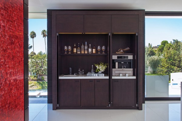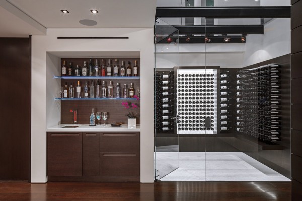 Một kiệt tác thể hiện cách tổ chức không gian chuyển tiếp tuyệt vời là hầm rượu vang và bar tại gia được thiết kế có thể nhìn thấy qua sàn kính, chỉ cách vài mét từ sảnh chính.