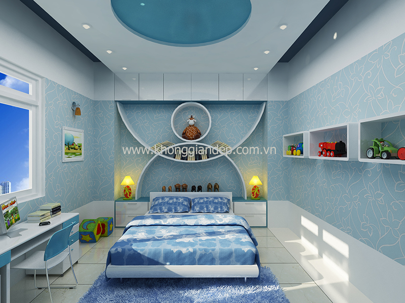 Những mẫu thiết kế dưới đây do các kiến trúc sư Không Gian Đẹp thiết kế với việc sử dụng màu xanh da trời tạo cảm giác dịu mát, thanh thoát.