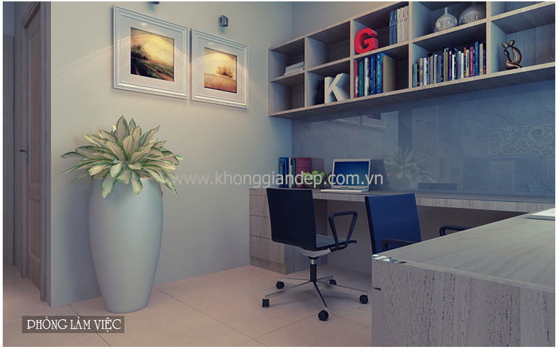 Góc làm việc tông màu xanh nhạt cho cảm giác thoải mái