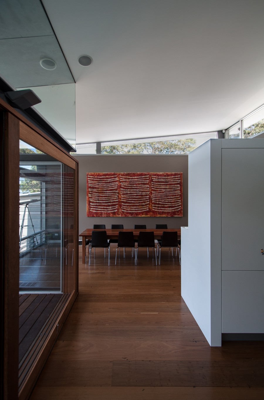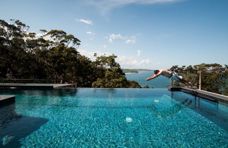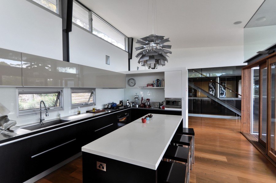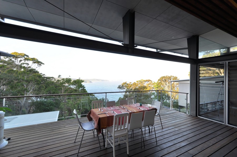 Khách hàng đã đặt một kiến trúc sư cảnh quan (anh Richard Stutchbury) – cũng là một nhà điêu khắc để thiết kế không gian ngoài trời và cung cấp các tác phẩm điêu khắc quan trọng. Richard sử dụng một số loài thực vật nguồn gốc địa phương nhưng có vài tính năng kỳ lạ. Anh đã thực hiện các tác phẩm ở gần hồ bơi và trong vườn, tạo ra những tác phẩm tinh tế và hài hòa với kiến trúc của ngôi nhà.