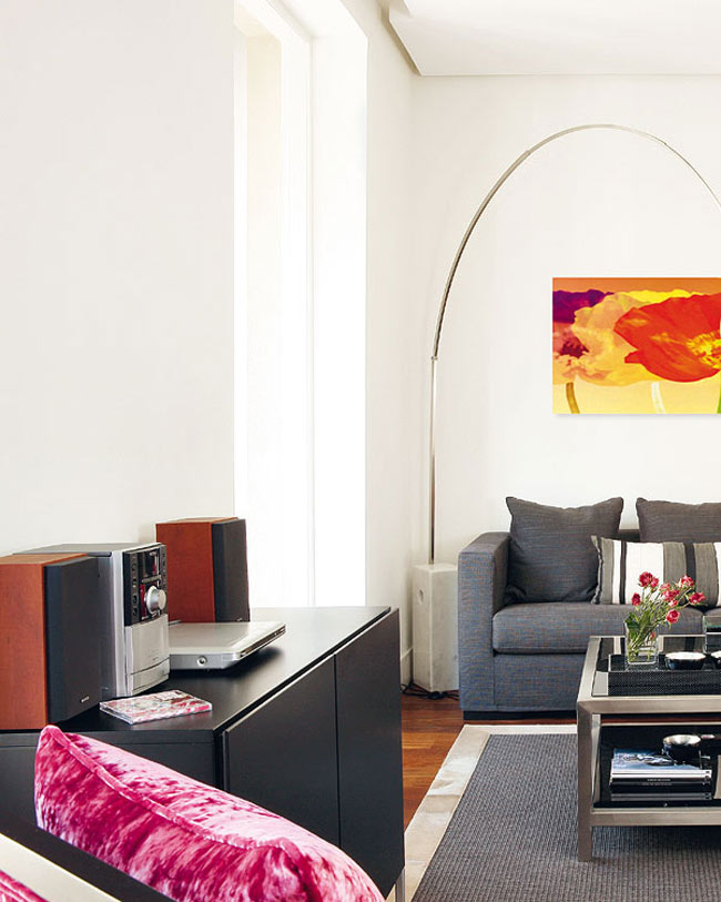 Nền tảng màu đơn sắc mang đến sự đồng nhất cho toàn bộ nơi này. Trong khi đó, những màu rực rỡ khác cung cấp nét cá tính cần thiết cho căn hộ.