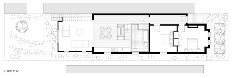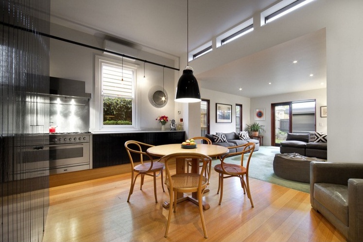Khi mở cánh cửa đôi phía sau nhà ra, tấm thảm xanh lá cây trong phòng khách khiến chúng ta có cảm giác như kết nối với bãi cỏ tươi tốt mềm mại của khu vườn từ trong ra ngoài. Hình thức và vật liệu xây dựng, đặc biệt là yếu tố gỗ đen bề ngoài của Brunswick House giúp ngôi nhà trở nên cá tính và độc đáo.