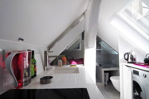 Khi bạn nghĩ về nó, đây có lẽ là giải pháp tốt nhất nếu bạn muốn có một gian bếp, một phòng tắm, khu vực sinh hoạt và làm việc tất cả trong căn gác mái này. Diện tích nhỏ đã được tận dụng tối đa.