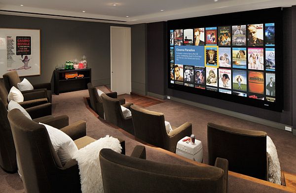 Phòng chiếu phim là nơi các thành viên trong gia đình cùng nhau xem những bộ phim giải trí vào mỗi cuối tuần. Không chỉ là chốn giải trí đơn thuần, nhiều mẫu thiết kế phòng chiếu phim tại gia với nội thất nền nã, hệ thống ánh sáng hay thiết kế những mảng tường thanh lịch sẽ giúp cho căn phòng trở nên bắt mắt và lộng lẫy hơn.
