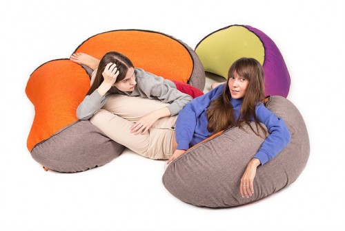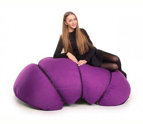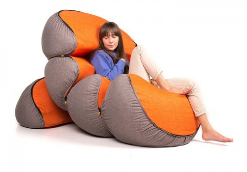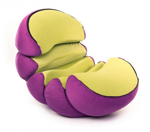 Hình dáng linh hoạt của chiếc ghế nệm khiến người ta liên tưởng đến con sâu đá, có thể trải rộng hoặc cuộn tròn như hòn bi.