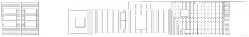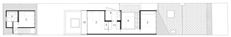 Ngôi nhà bao gồm một tầng một hình ống bằng vật liệu gỗ, bên dưới là tầng trệt được xây bằng gạch. Ánh sáng tự nhiên chiếu sáng từ sàn cho tới trần nhà thông qua hệ thống các cửa sổ đối diện với mảnh sân trong.