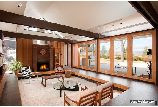 Sự khác biệt trong kết cấu của ngôi nhà cũng có thể được dùng để phân chia không gian sống.Một trong những cách để tạo sự riêng tư cho không gian bên trong nhà và khu vực ra vào là tạo vách ngăn bằng kính trong suốt.
