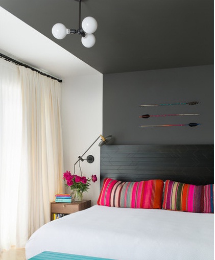 Nếu bạn không thể thay đổi chất liệu của trần nhà hãy biến đổi màu sơn của căn phòng. Căn phòng phía dưới toàn bộ không gian được sơn màu xám để phân biệt với khu vực cửa sổ bên cạnh.