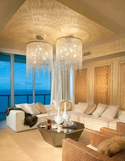 Căn phòng được sơn chung một màu, tuy nhiên trần nhà của khu vực ghế ngồi được xây thấp hơn để tạo cảm giác ấm cúng. Đèn chùm được gắn trên trần tạo điểm nhấn cho khu vực này.