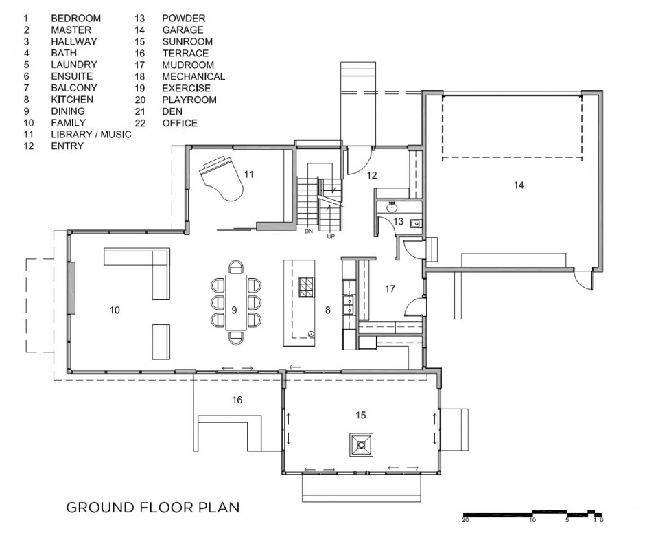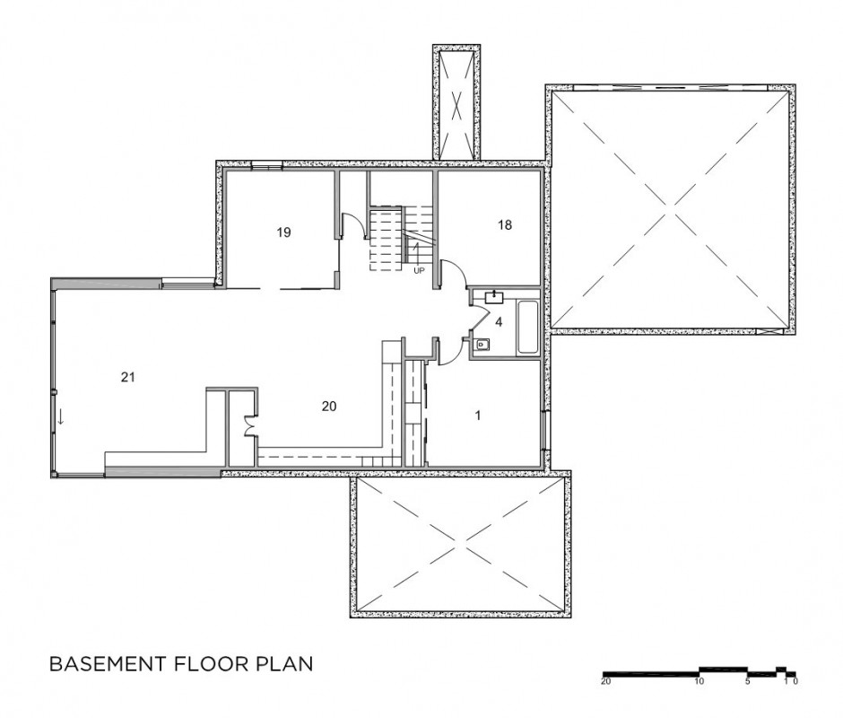 Ngôi nhà cho bạn cảm giác gọn gàng và tươi sáng. Tầng trệt được coi là cốt lõi của ngôi nhà, bao gồm phòng khách rộng mở, nhà bếp và cả phòng ăn. Các tấm kính lớn thay thế cho những bức tường chật hẹp cùng với đồ nội thất sơn mài trắng giúp tăng cảm giác thông thoáng. Sàn nhà và một số đồ trang trí nội thất được làm bằng gỗ khai hoang. Điều này làm nên một không gian sống thanh khiết, vô trùng nhưng vẫn ấm áp.