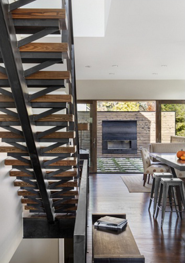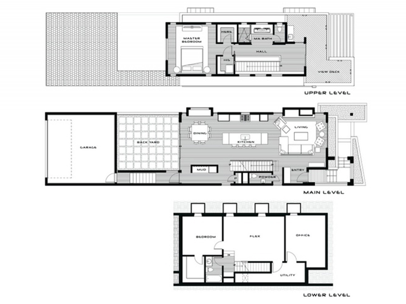 Tầng chính của ngôi nhà bao gồm nhà bếp, phòng ăn, và phòng khách, trong khi tầng trên là phòng ngủ lớn có lối ra sàn ngoại thất bên ngoài. Với tầm nhìn hướng ra đường chân trời trung tâm thành phố về phía Nam, phần trên của ngôi nhà đã được thiết kế thành sàn ngoại thất áp mái.