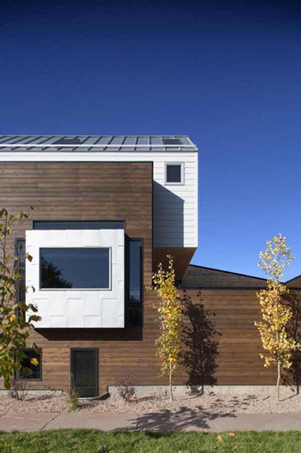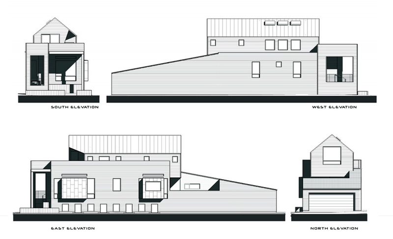 Mái nhà nhọn của ngôi nhà cũng được xây theo đúng yêu cầu quy hoạch của thành phố, đáp ứng an toàn cho việc cất cánh và đáp của các máy bay có số lượng lớn. Chiều cao nhà cũng phù hợp với bối cảnh khu vực xung quanh. Ngoài ra, ngôi nhà cũng có thêm hai phòng ngủ phụ được xây ở tầng dưới. Mặt tiền nhà được ốp gỗ Cedar Tây phương với màu nâu sẫm hài hòa.