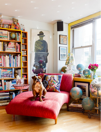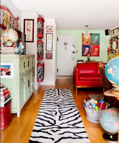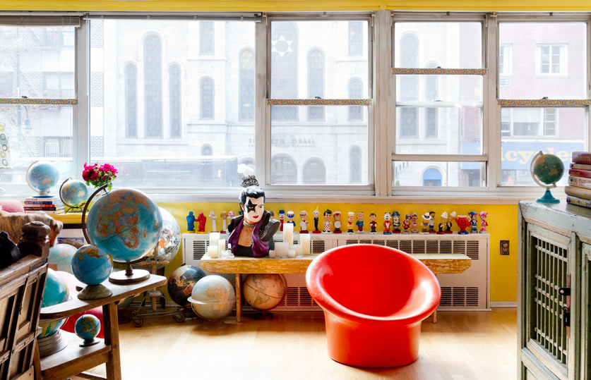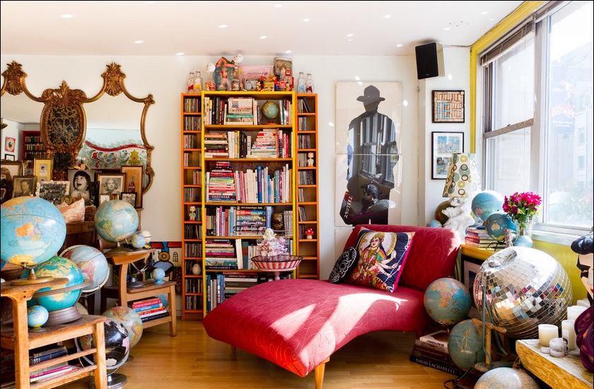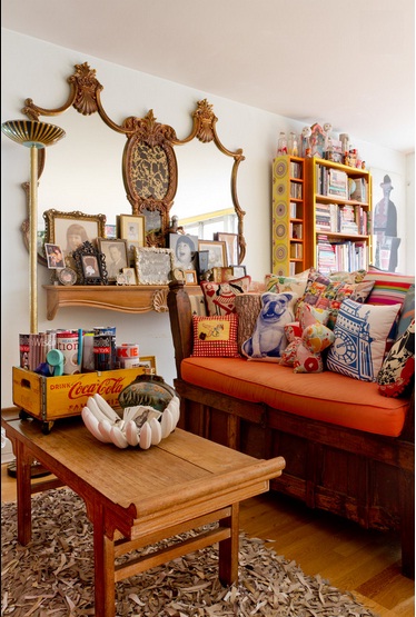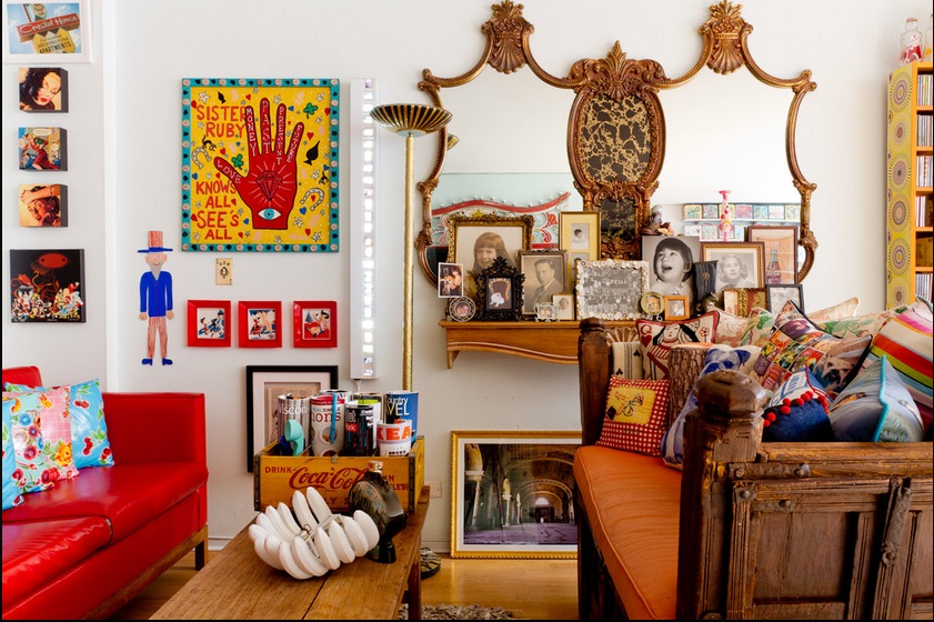 Engelbach mô tả phòng khách như chính con người của mình vậy: những bộ sưu tập, màu sắc tươi sáng, hàng thủ công, chợ trời, hình ảnh gia đình,… Tất cả trông có vẻ điên rồ nhưng lại ăn khớp và quyện vào với nhau khiến ta cảm thấy thanh thản khi ở trong không gian như vậy.