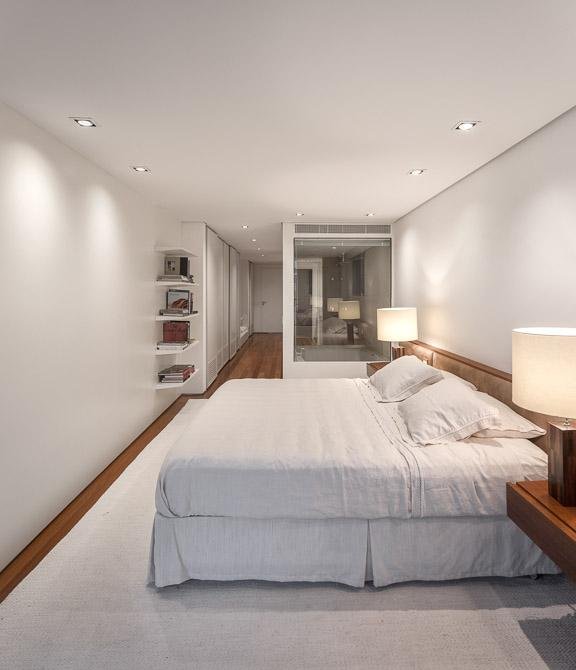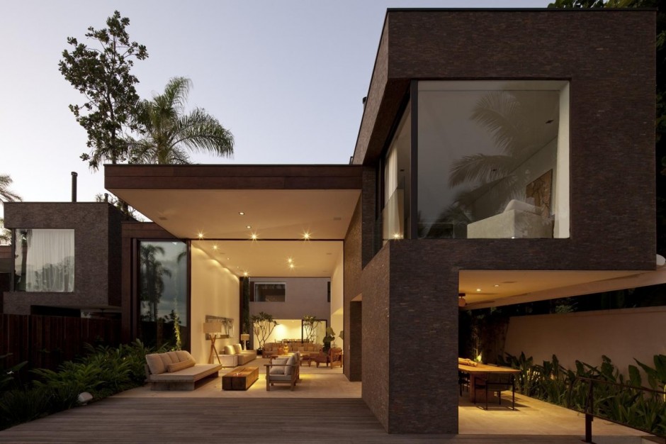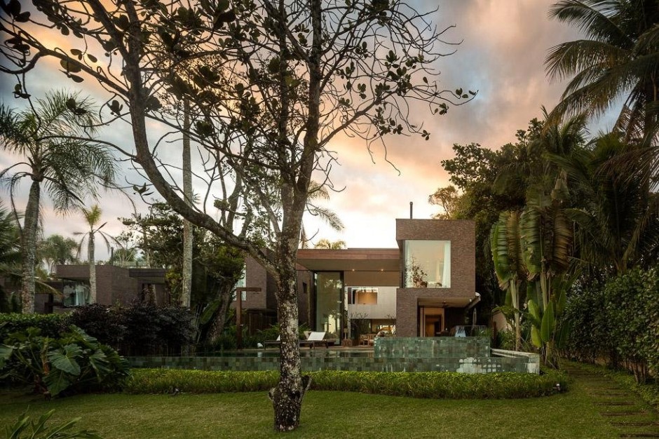 Hai phần riêng biệt của biệt thự được nối với nhau bằng một hành lang bao gồm tất cả các không gian sống. Một hồ bơi rộng với không gian thư giãn ngoài trời cùng những tính năng hấp dẫn, tất cả đã tạo nên một kiến trúc nhà hiện đại ở Brazil. (Ảnh: Fernando Guerra)