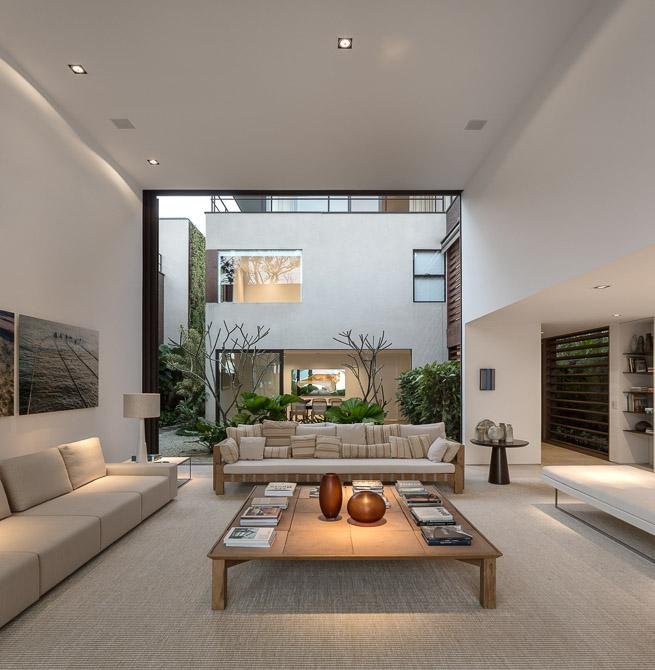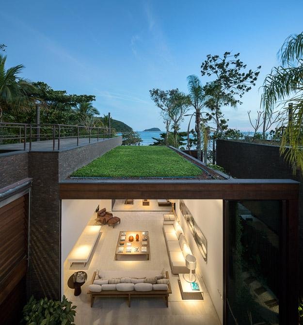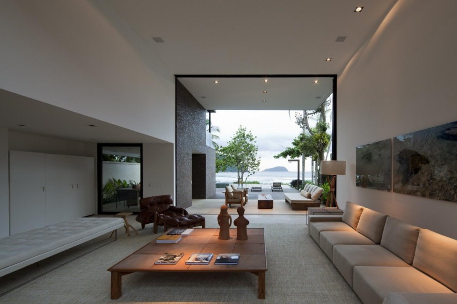 Với vị trí đắc địa giữa một khu bảo tồn rừng rộng lớn và các bãi biển duyên dáng của Baleia, rõ ràng ngay từ đầu rằng dự án đã thể hiện mục đích tận dụng lợi thế của cảnh quan độc đáo. “Tất cả các không gian trong biệt thự được phát triển với tầm nhìn chéo hướng ra những không gian khác mà vẫn kết nối và thống nhất giữa cảnh bên trong và bên ngoài. Dự án đã đáp ứng thách thức của việc đảm bảo sự riêng tư giữa các phòng mà không làm mất đi tầm nhìn ngoạn mục của cảnh quan xung quanh”.