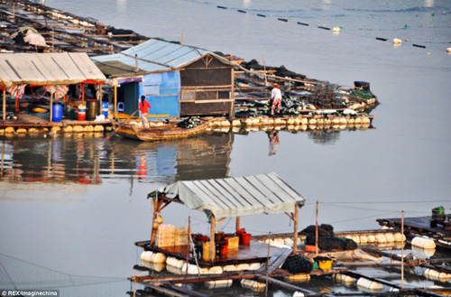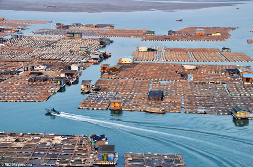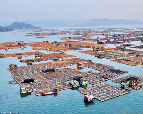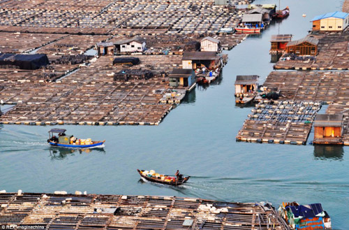 Các trang trại thủy sản và nhà nổi của “dân digan trên biển” đang lan rộng ra toàn bộ vịnh dọc bờ biển Phúc Kiến.