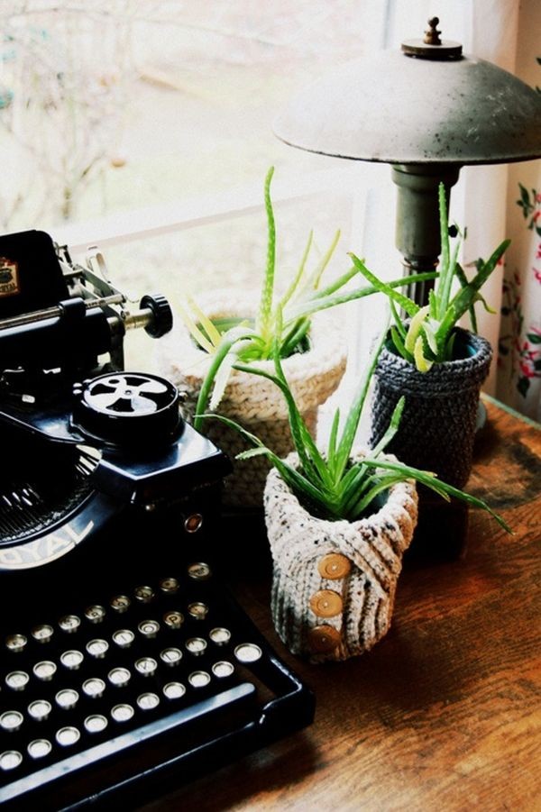 Một các đơn giản nữa và làm vỏ bọc cho chậu cây để trang trí. Trông những chậu cây thật ấm áp và ấm tượng phải không nào?