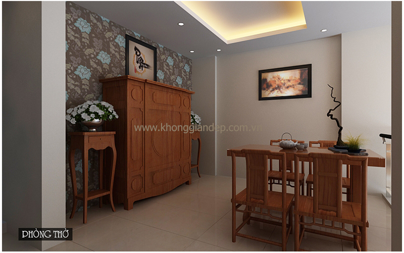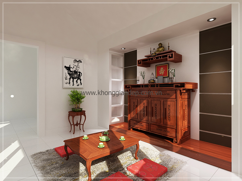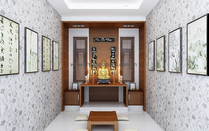 Phòng thờ cúng trang nhã mà vẫn tôn nghiêm