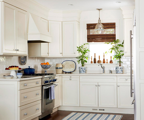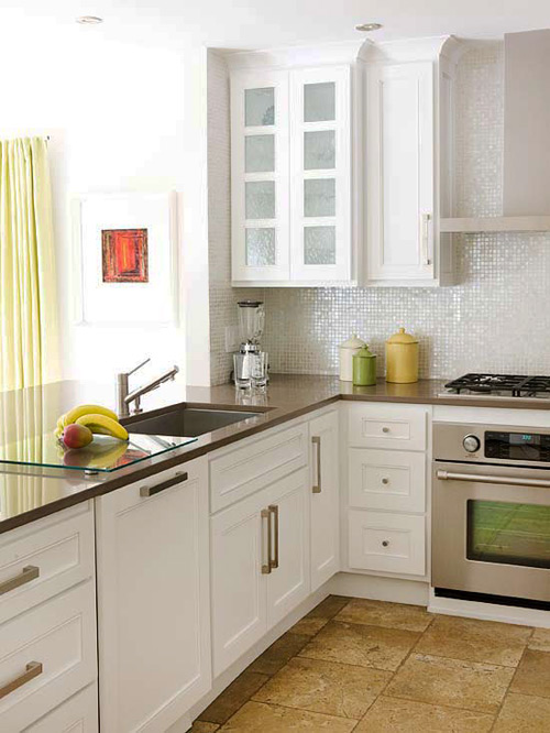 Màu trắng là người bạn tốt nhất trong một căn bếp nhỏ. Nó phản chiếu ánh sáng, làm tăng cảm giác không gian rộng rãi hơn và dường như xóa nhòa sự hiện diện của các bức tường xung quanh. Khi bạn sử dụng màu trắng cho tủ bếp đến các mặt bàn, các bức tường và trần nhà, bạn tạo nên một không gian liền mạch, không hề có những góc cạnh hoặc ranh giới ngăn cản mắt nhìn.
