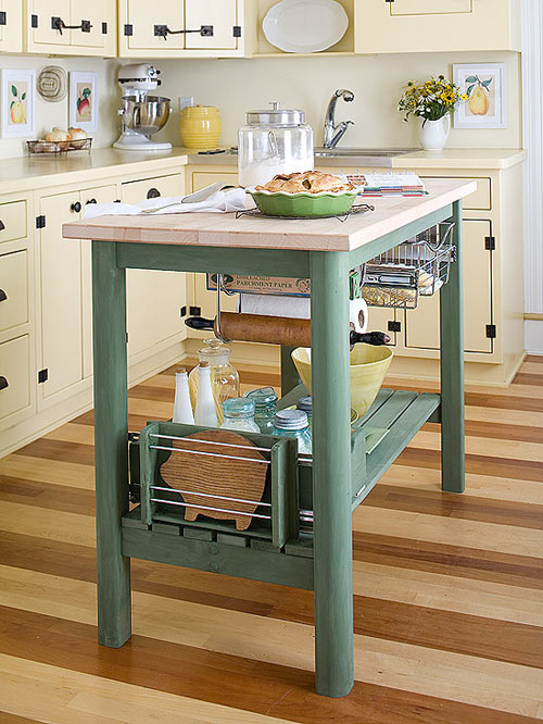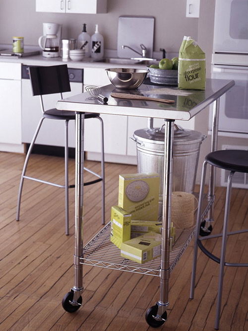 Một phòng bếp nhỏ buộc phải lựa chọn những đồ nội thất nhỏ gọn, nhưng bạn có thể tạo ra một thay đổi bằng việc chọn một đảo bếp, những chiếc ghế kiểu bar hoặc các công vụ gọn nhẹ như chiếc đảo bếp kim loại này.