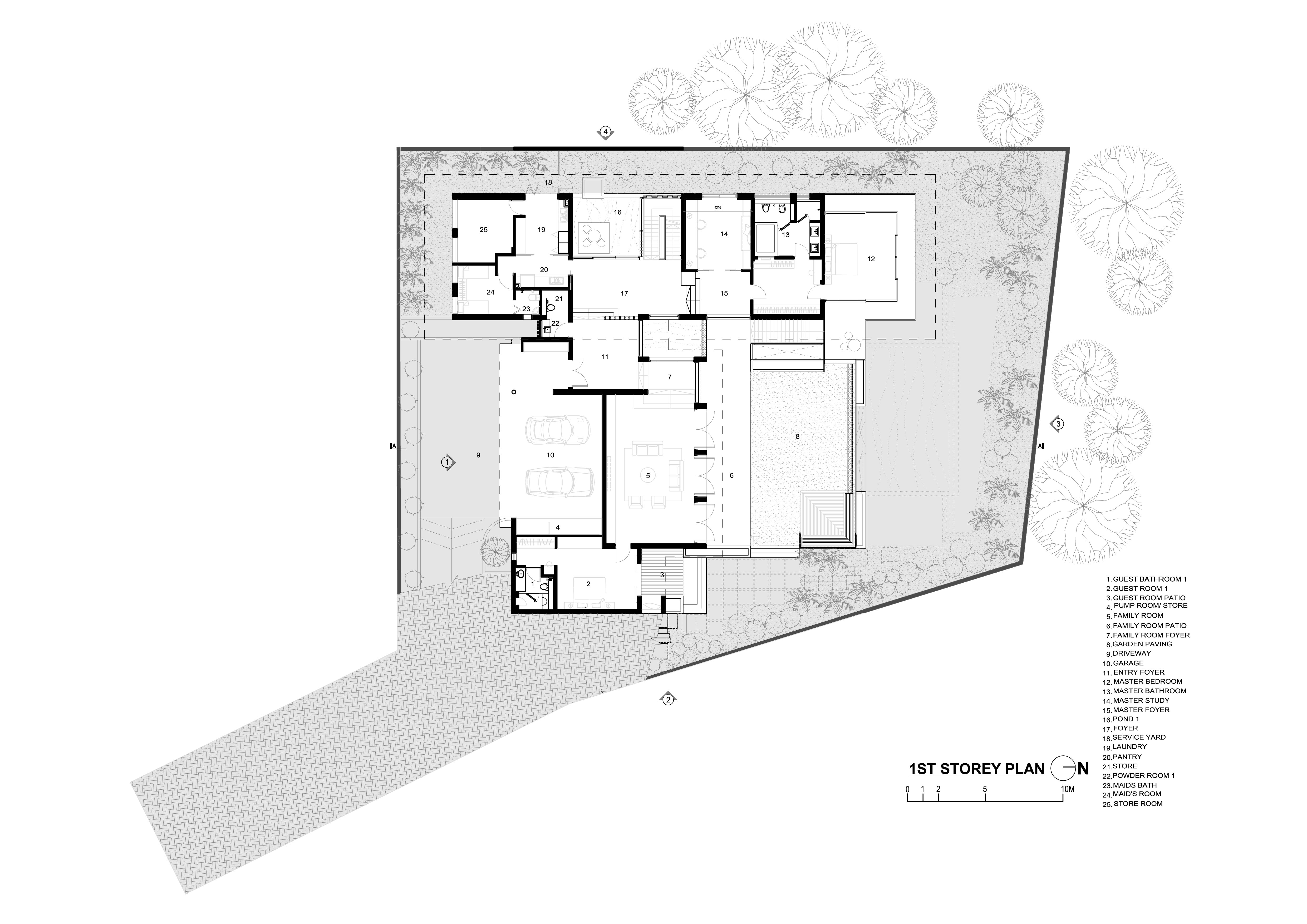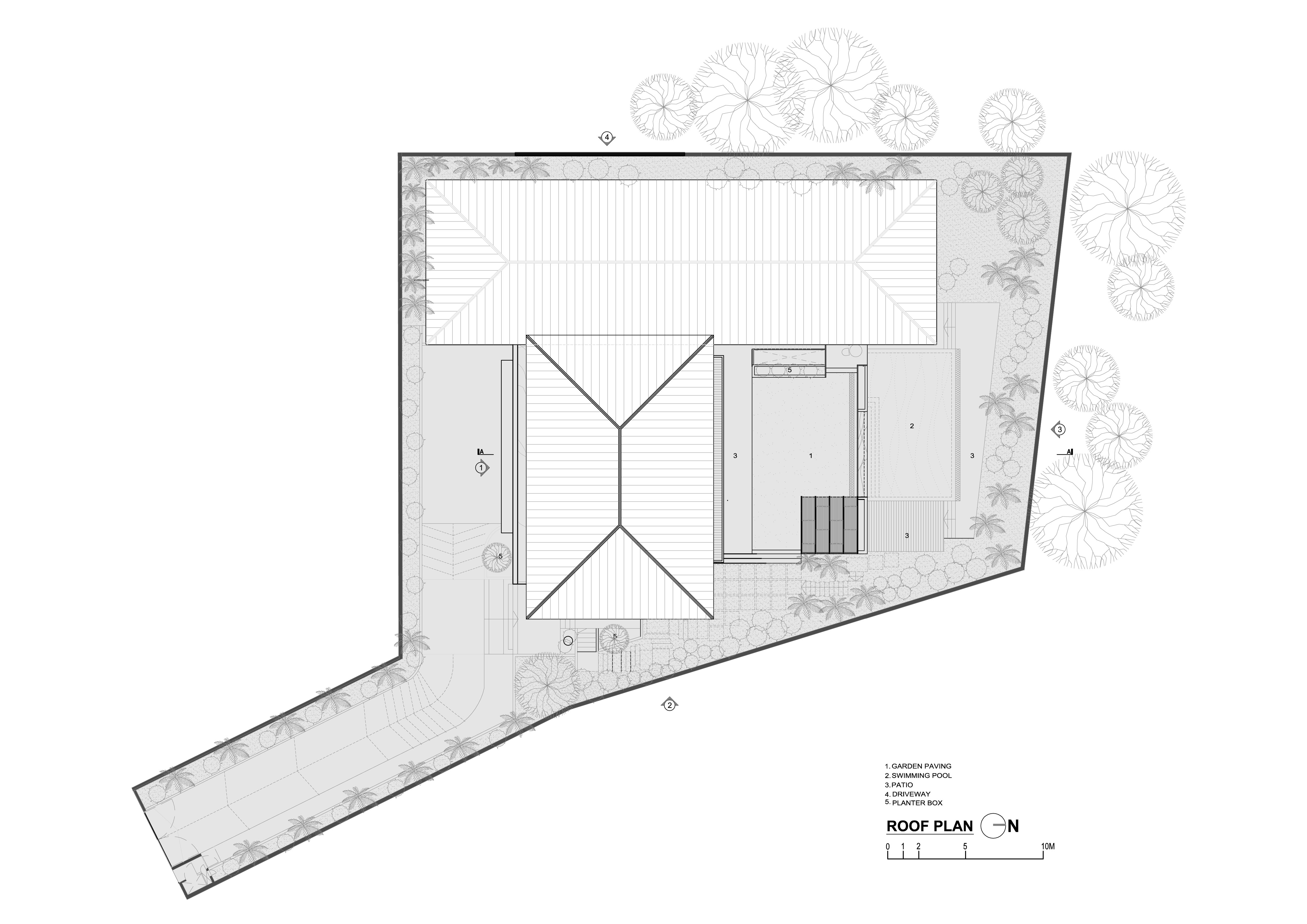 Ngôi nhà bao gồm một khu vực chính, một gian lớn và một cánh phụ. Phòng khách mở ra khung cảnh sân vườn trong khi phòng ngủ lại hướng ra khu rừng nhiệt đới, giúp gia chủ được truyền cảm hứng như đang ở thiên đường vào mỗi sáng thức giấc.
