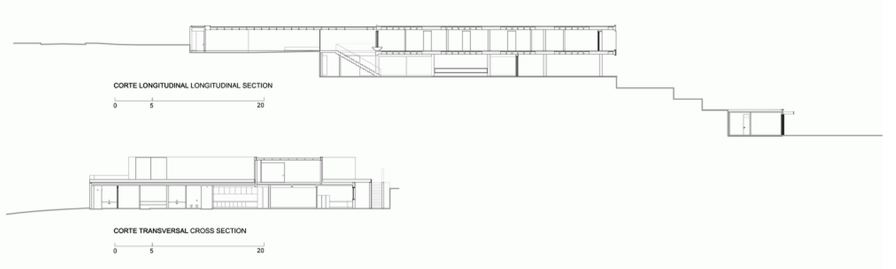“Chiếc hộp lớn” này có hai mặt và mặt dưới được phủ gỗ nhiệt đới màu xám. Các phòng ngủ dọc hành lang được xây đối mặt về phía Bắc và nhìn ra khu vực giải trí.
