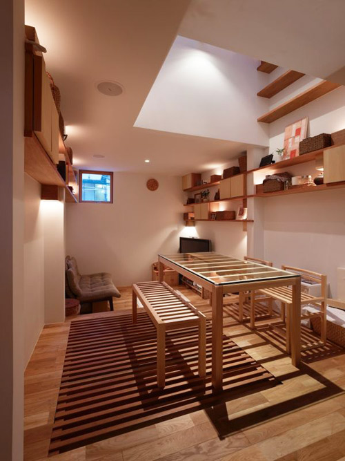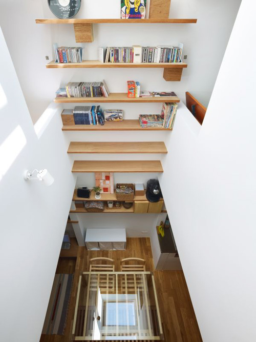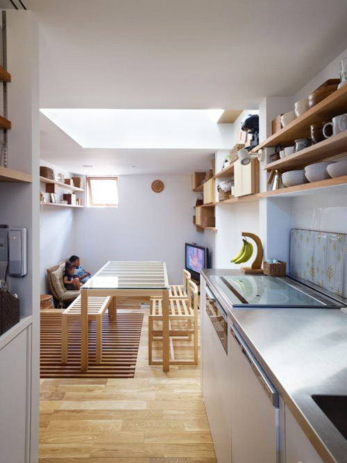 Do không thể mở cửa sổ hai bên nhà để đón sáng, các KTS thiết kế cửa sổ trần thay thế giúp đưa ánh sáng tràn ngập mọi không gian, xuống tận tầng cuối cùng của ngôi nhà.
