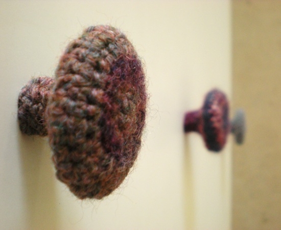Hãy “mặc” những chiếc áo len rực rỡ cho tay nắm tủ của bạn khi mùa đông đến. Rất đơn giản, bạn có thể móc hoặc đan những chiếc bọc tay nắm bằng len và bọc ra ngoài chiếc tay nắm tủ nhà bạn.