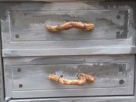 Tương tự, hãy thử chọn lựa những nhánh củi với kiểu dáng và kích thước phù hợp với chiếc tủ của bạn. Sau khi sơ chế bằng cách cắt, gọt và sơn bóng, bạn có thể dùng đinh vít cố định vào cánh tủ. Vậy là chiếc tủ của bạn đã có diện mạo khác lạ với những chiếc tay cầm mới.