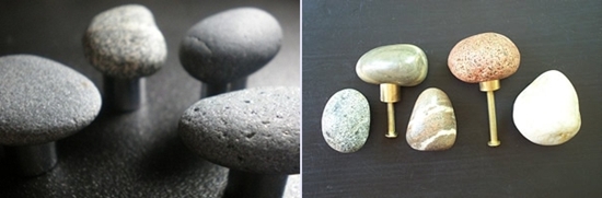 Bạn cũng có thể sử dụng những vật liệu tự nhiên như đá hoặc sỏi cỡ lớn rồi khoan cố định một đầu vào đá, một đầu bắt vào tủ để tạo là đã có chiếc tay nắm tủ mới, độc đáo và lạ mắt hơn.