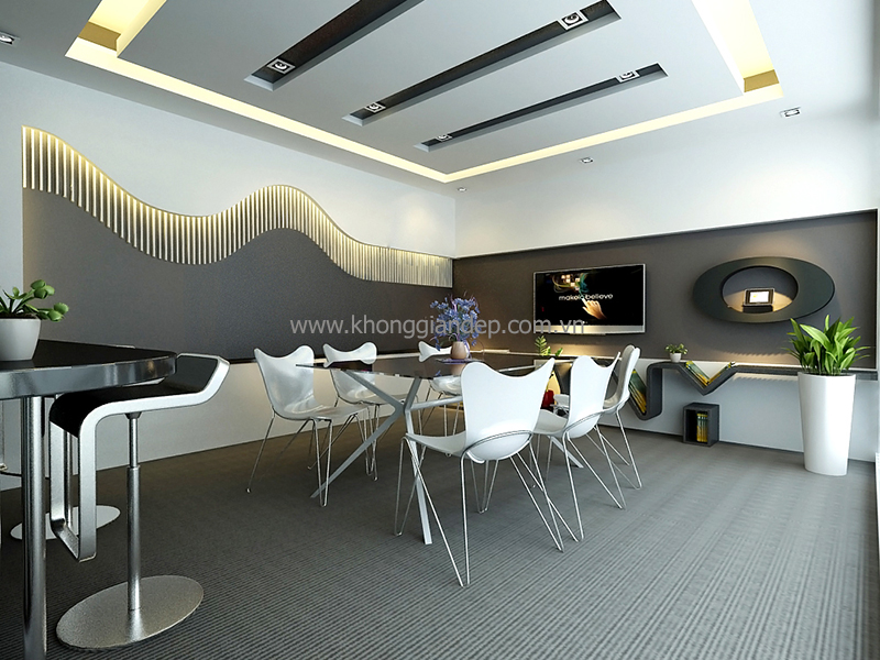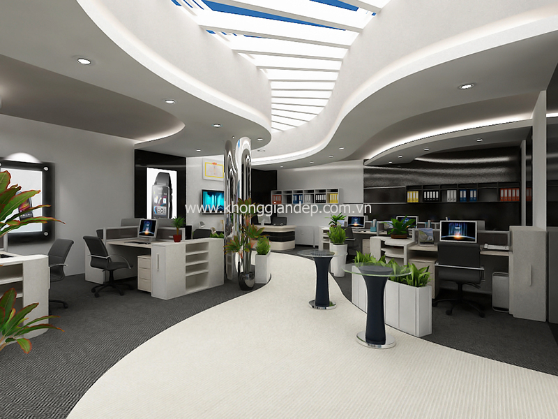 Dưới đây là mẫu văn phòng làm việc với những mảng khối, đường cong trẻ trung, năng động nhưng nhờ sự khéo léo sắp xếp và ý tưởng sáng tạo của kiến trúc sư Trình Minh Sơn – Công ty Cổ Phần Đầu Tư Xây Dựng Không Gian Đẹp thiết kế, chúng ta có một văn phòng làm việc hiện đại, sang trọng, cá tính nhưng vẫn trang nhã và lịch sự.