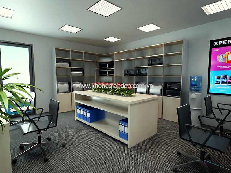Nội thất văn phòng cũng được chọn màu ton-sur ton với thiết kế chung