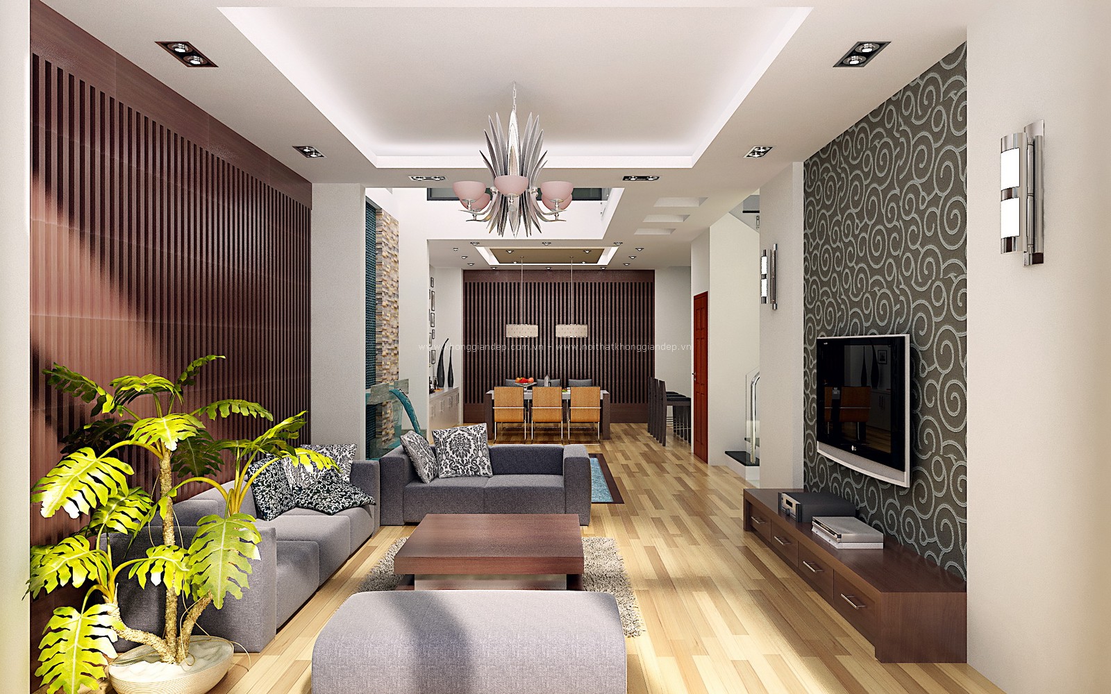 - Có thể sử dụng cây cảnh, hoặc kể cả hồ nước nhỏ, hồ cá trong phòng khách, tuy nhiên cần nhắc để tránh việc làm tăng cao độ ẩm trong nhà. Chỉ nên sử dụng đối với phòng khách có không gian rộng, thông thoáng, hợp với những chủ nhân mệnh Thủy, Mộc. Khi bày đặt nên tìm những vị trí để che chắn những góc cạnh sắc nhọn như góc tường, góc bàn để triệt tiêu luồng khí dữ.