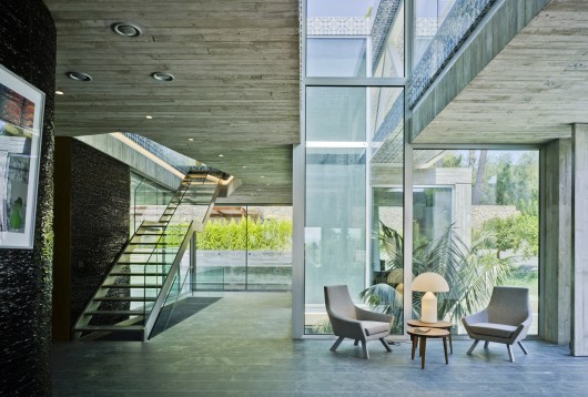 Ngôi nhà có thiết kế nội thất kỹ lưỡng, xem xét từng chi tiết bên trong (bao gồm cả cửa vào bằng bê tông nặng 2 tấn) để tạo ấn tượng độc đáo trong khu vực chức năng.