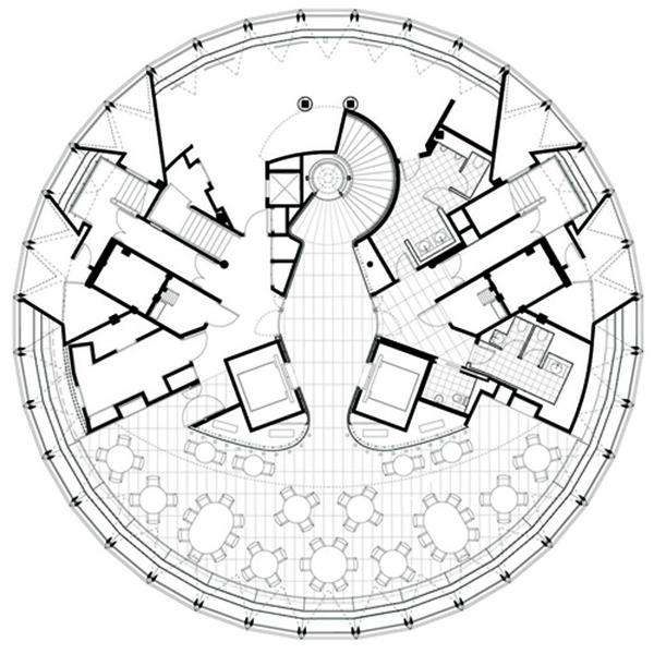 Cách bố trí sàn nhà Gherkin – Ảnh © Foster + Partners.