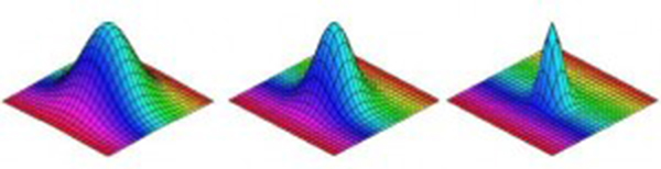 Những bề mặt này được vẽ bởi hàm z=ea(x2−y2). Đây là hệ trục tọa độ được hình thành bởi 3 trục x,y,z. Số a quyết định hình dạng của bề mặt. Hình thứ nhất a=1, thứ hai a=5 và thứ ba a=7.