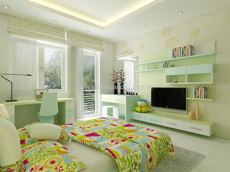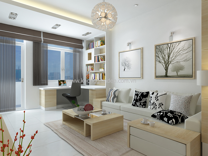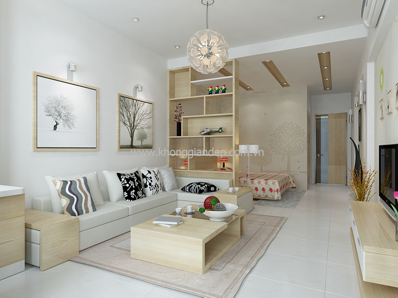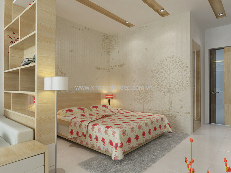Đặc biệt, đây cũng là phòng sinh hoạt chung của cả gia đình, và được ngăn khéo léo bằng chiếc kệ trang trí kiêm vách ngăn tiện lợi, ngăn một phần căn phòng để đặt chiếc giường vải hoa nhẹ nhàng.