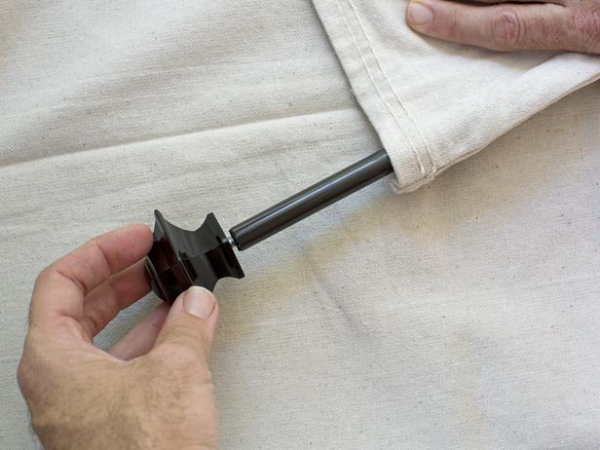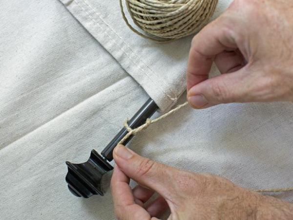 Treo thả vải lò sưởi bằng cách đặt các dây bện thắt nút trên móc, di chuyển thanh xếp nếp lại cho đến khi nó hoàn hảo. Đặt móc hoặc móc thả trên thanh màn treo.