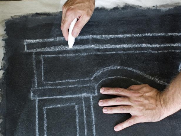 Hầu hết các loại khăn vải thả rất xốp, vì vậy điều quan trọng là chính nó trước khi sơn bảng đen để giảm số lượng các lớp cần thiết. Sử dụng một con lăn sơn, thậm chí thêm một lớp sơn lót.