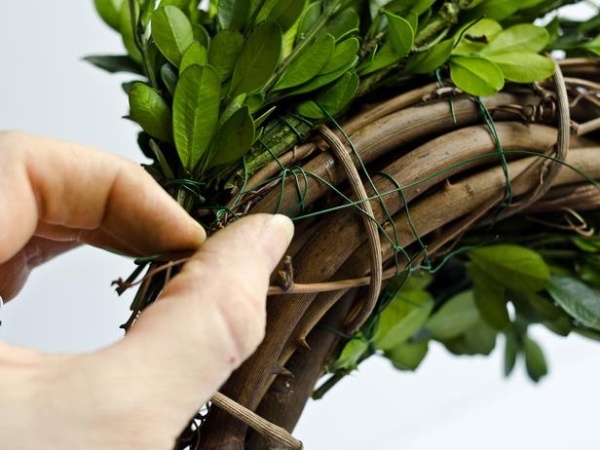Mẹo: Hãy ra khỏi ánh sáng mặt trời trực tiếp và phun nước mỗi tuần để giữ cho vòng hoa tươi và màu xanh lá cây trong nhiều năm.