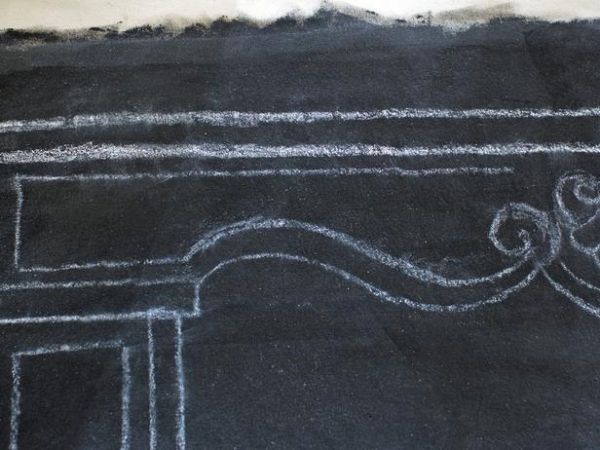 Dùng phấn để vẽ hình bóng của một lò sưởi. Thêm hình ảnh quan bằng cách cho lò sưởi của bạn trang trí kiến trúc như những trụ gạch hoặc khuôn. Sau khi lò sưởi được hoàn tất, thêm các bản ghi cháy để mở của lò sưởi với đá phấn.
